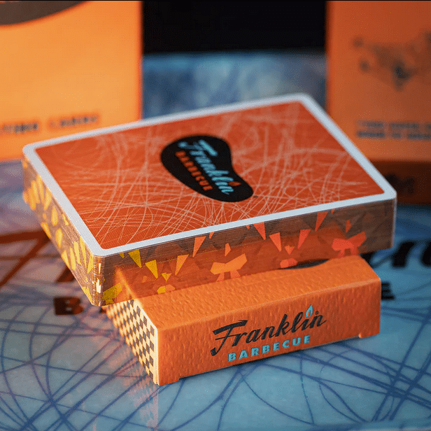 Franklin BBQ Classic Orange Limited Edition Gilded-Black Playing Cards by Fulton