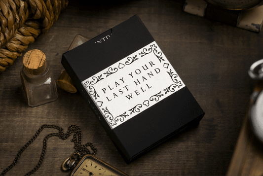On November 11th, 2019 at 11:11pm I launched my first deck of playing cards….11th Hour. After those sold out and were long gone I made some changes and reprinted them so 11th Hour Gold came to be! I received such great and loving feedback about the marking system, theme of the deck and design that I decided to create 11th Hour Silver. In addition to keeping the same innovative marking system, everything is new! The back design is brand new, the tuck is refreshing, and the ace of spades is polished.