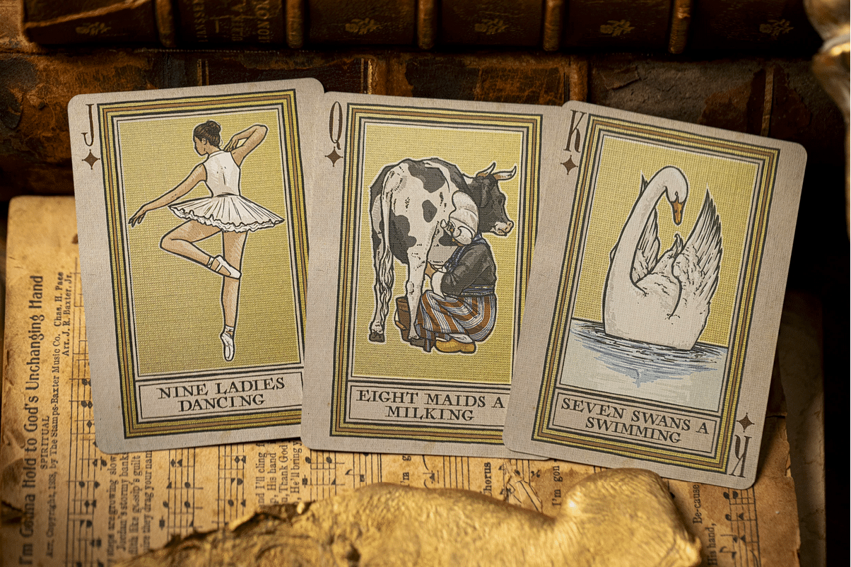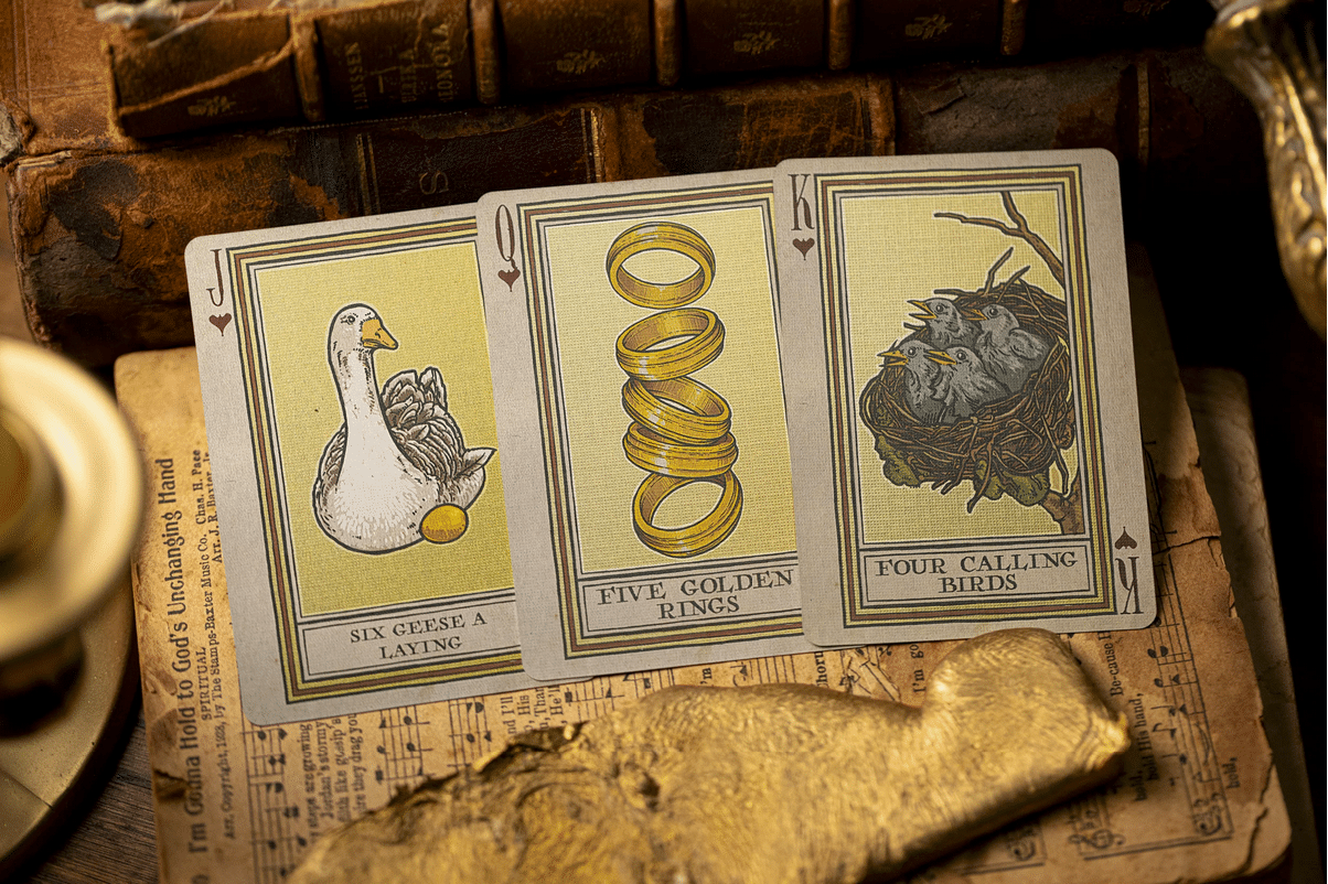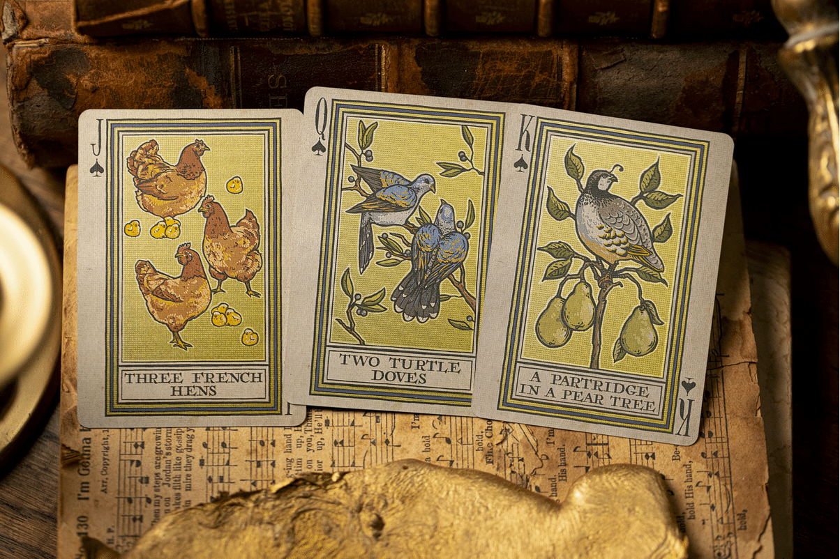The 12 Days of Christmas Playing Cards is December’s No. 13 Kings Wild Project Club subscription Deck.
