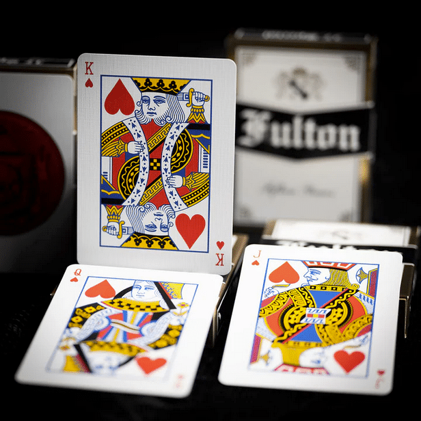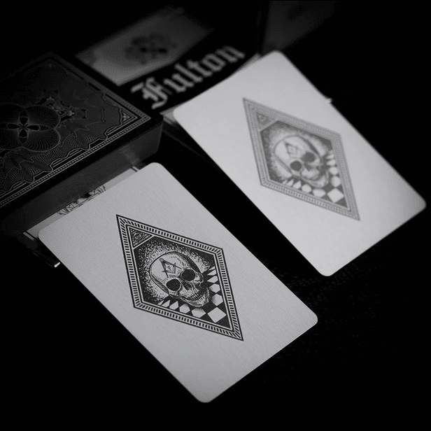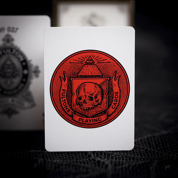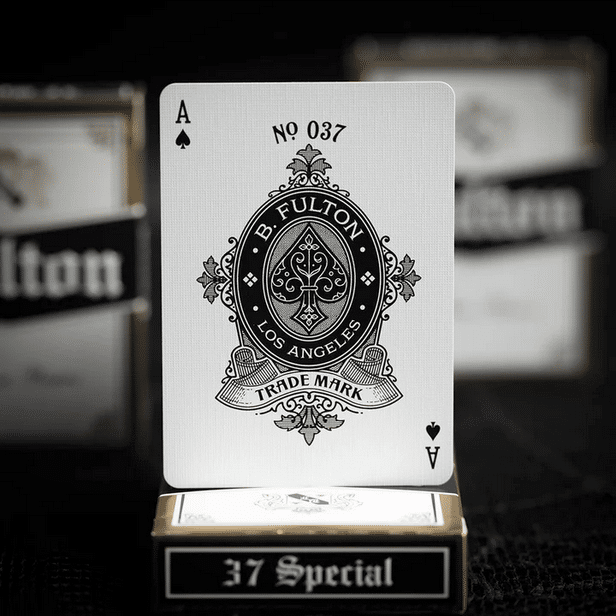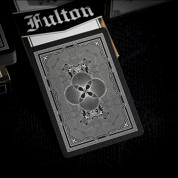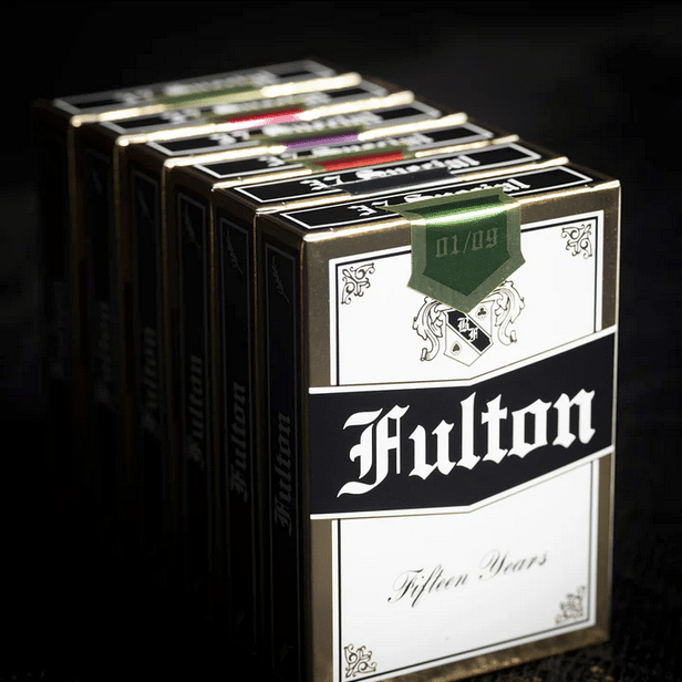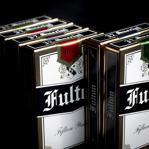 Made exclusively for this 15th Anniversary of Fultons. These are a show stopper. The gold foil encased tuck box welcomes you to the celebration of a lifetime. Inside you will find an authentically illustrated “bank note” style of playing card that features the Fulton’s Moths from Clip Joint as a way to bring this story full circle.