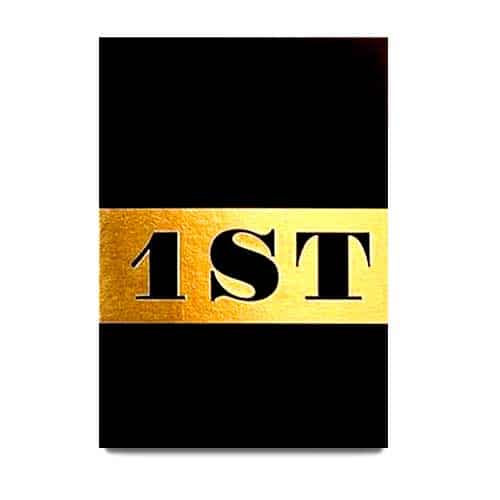 These Playing Cards are made with the highest quality stock by the United States Playing Card Company. Crushed and Air Cushioned finish. The tuck case is made of smooth paper that feels like velvet with a gold foil ring rapping around and 1ST debossed and cut out in the front of the deck.
