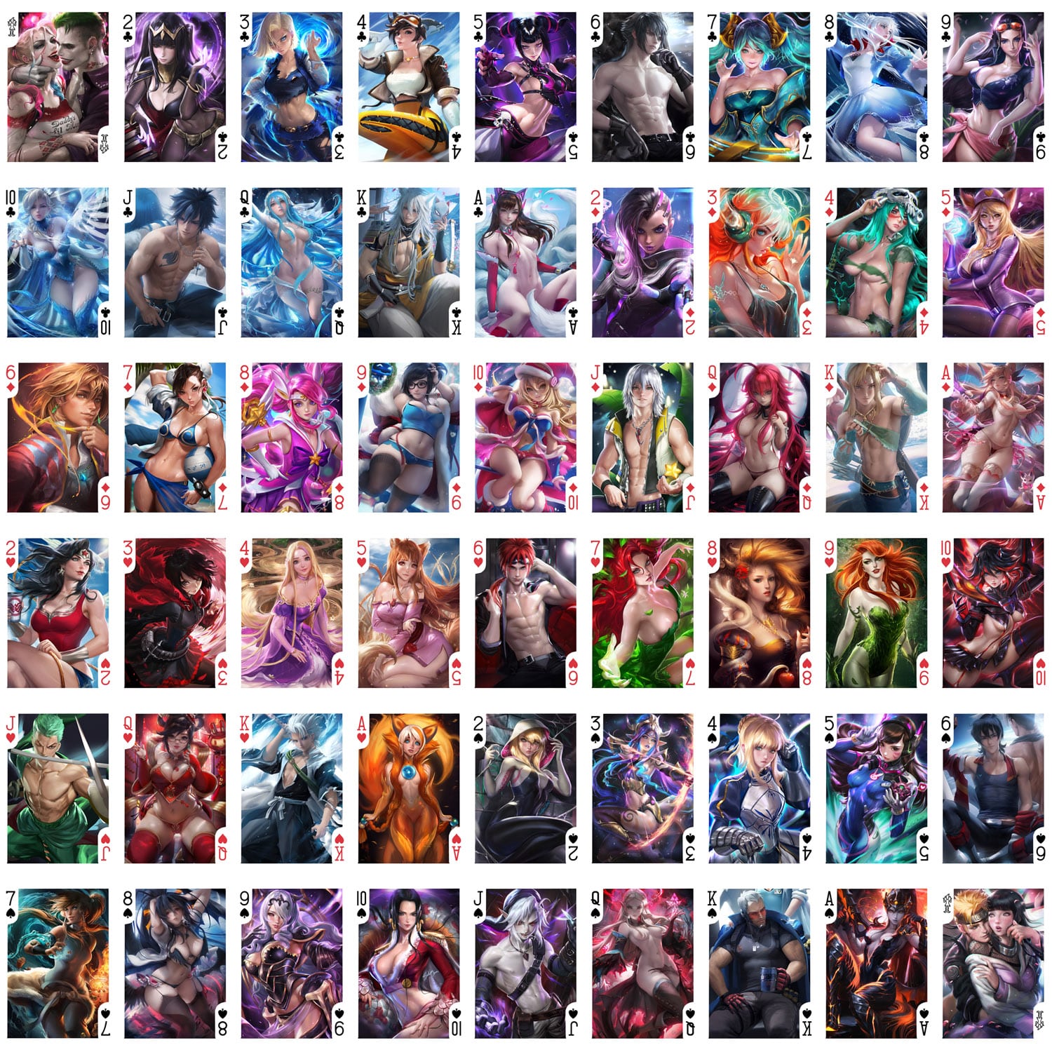 Standard Poker Playing Card Deck, 54 sheets (four suits and 2 jokers)