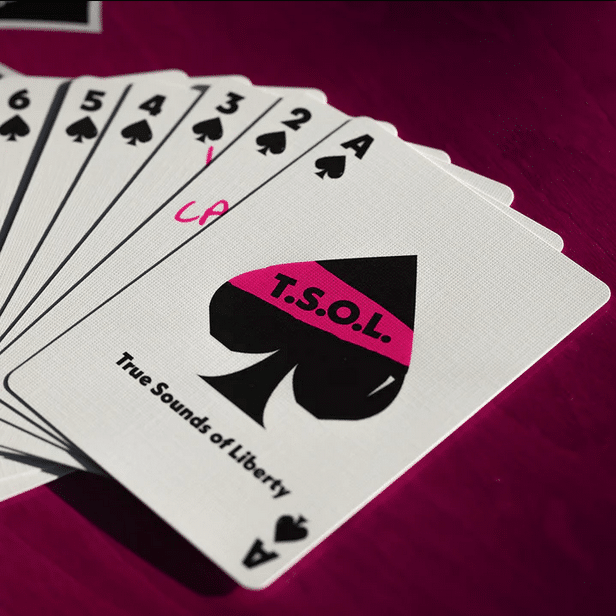 These limited edition playing cards feature original photographs from Linda Aronow—who vigorously photographed the peak era of TSOL out of her passion for the scene. Each court card in this deck showcases rare images of a bygone era of punk.