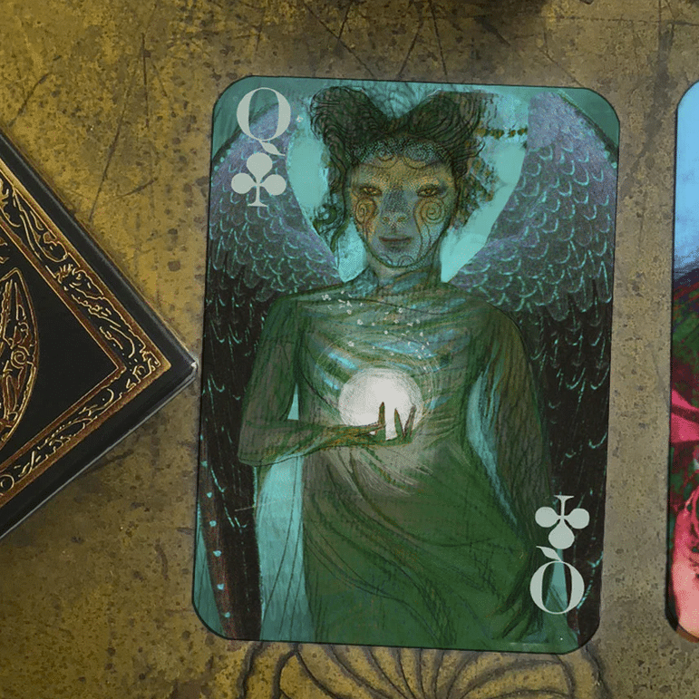 The gold version of our trio of Bag of Bones Playing Cards is as elegant as it is alluring. With it’s own distinct set of court cards, each of these sinister visitors has a story to tell.