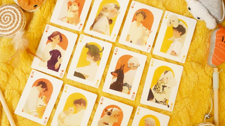 This deck, designed in warm tones, features beloved pets like Maine Coons and Golden Retrievers, bringing joy and comfort. The tuck case’s lenticular printing creates a captivating illusion of dual illustrations, enhancing the overall charm.