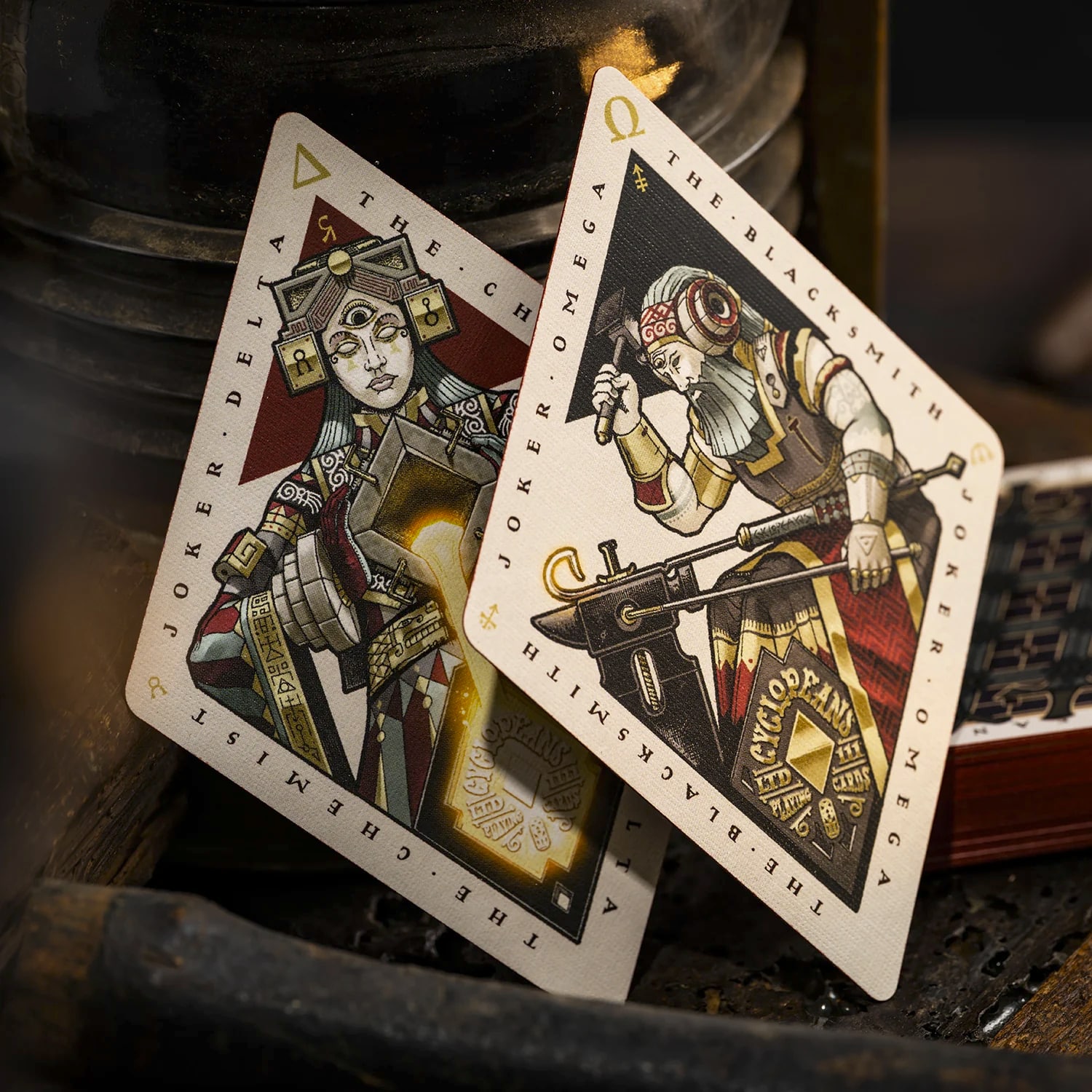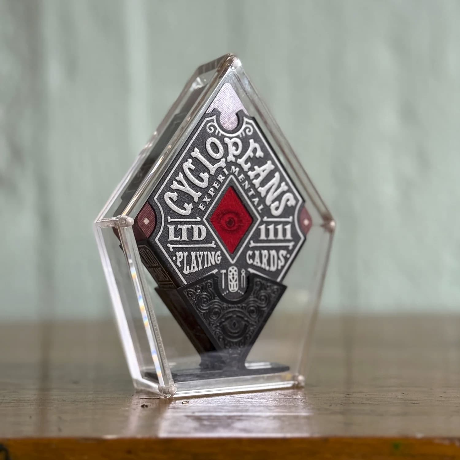 Introducing the Cyclopeans Experimental LTD1111—a bold experiment of the mythical cyclopean forge. This diamond-shaped deck reimagines traditional playing cards, offering a unique visual experience.