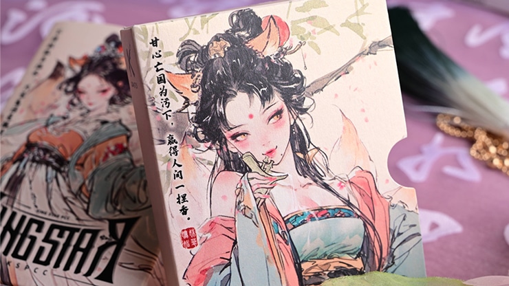 The card box design for Dakki draws inspiration from Su Daji (Dakki) in The Creation of the Gods. Renowned for her breathtaking beauty, she is often referred to as the “shy flower of the moon.” However, beneath her captivating appearance lies her true form-the Nine-Tailed Fox Spirit. This duality of allure and mystery is reflected in the intricate design, capturing both her elegance and the enchanting essence of her origin.