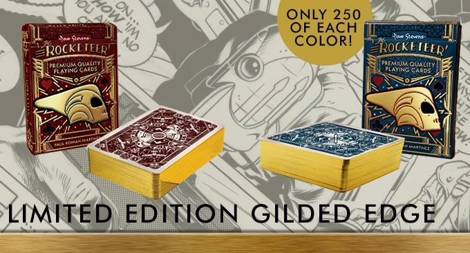 Limited to only 250 of each color produced, these decks feature a gold foil edge matching the shining Rocketeer helmet on the tuck box. These decks also feature a numbered seal showing the edition number.