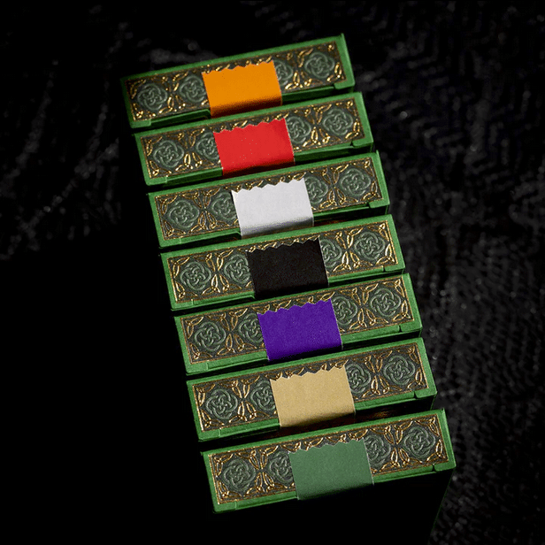 Tuck Box Paper was made in the United Kingdom. Playing Cards printed in China on Premium Cardistry Thin Stock for maximum pliability and durability.