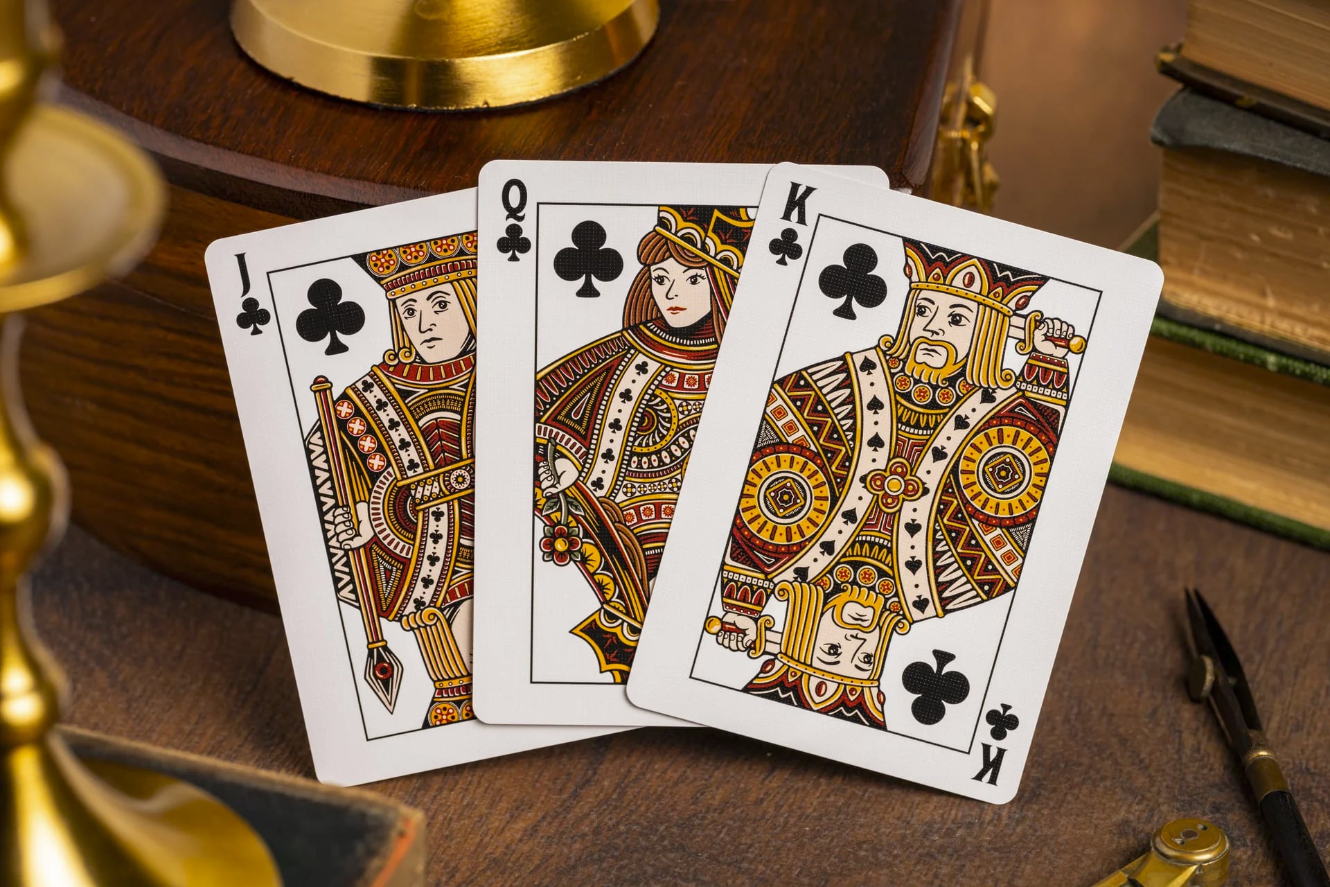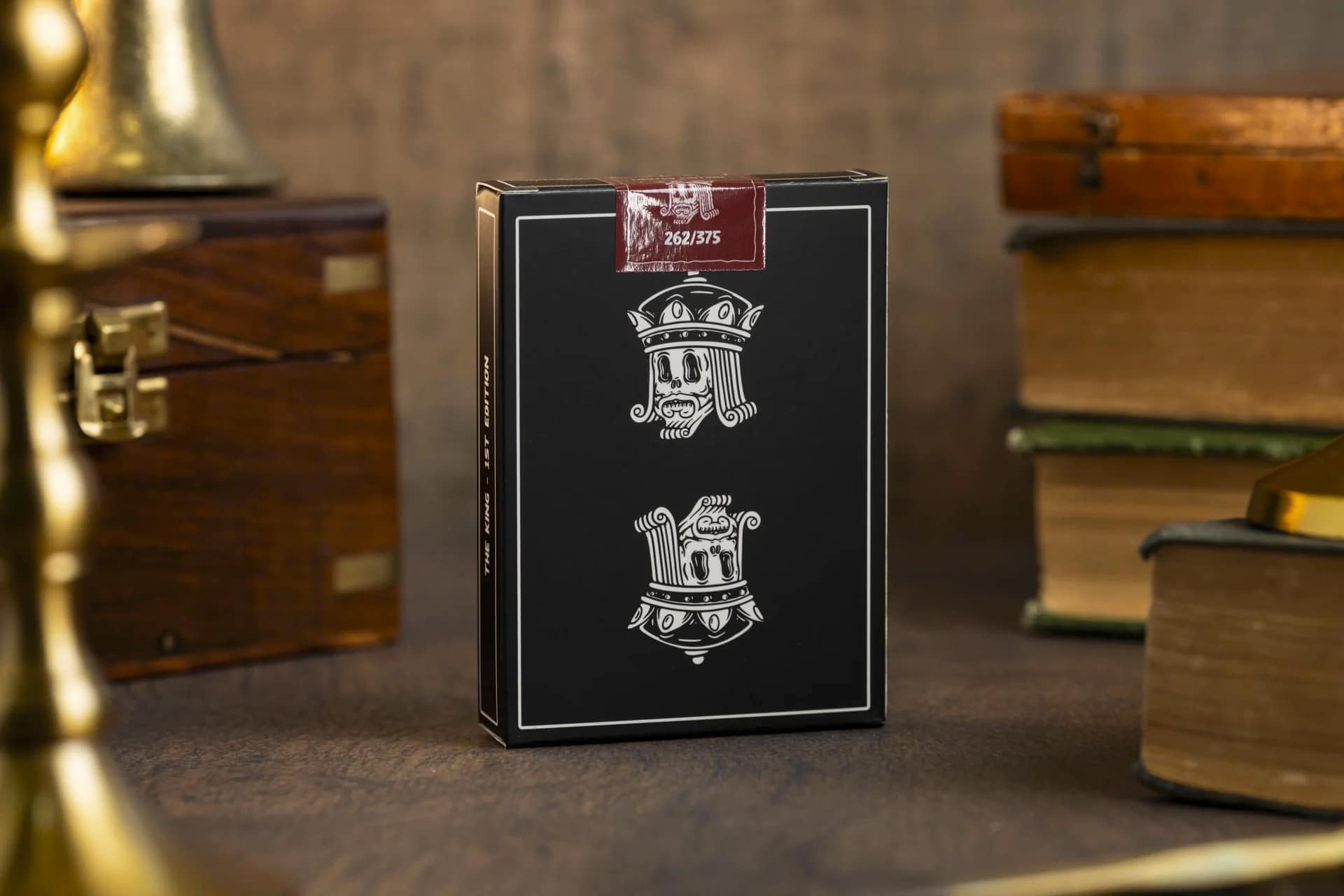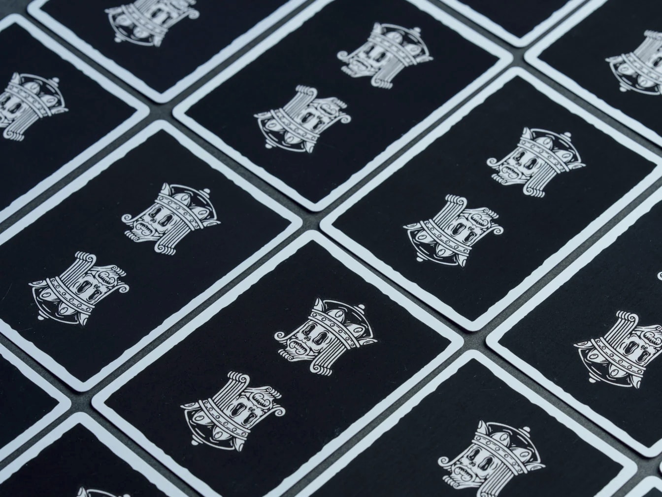 The King Logo edition features the same playing cards on the faces as the Red Logo deck, however we decided to create a new tuck + back design. We don’t often opt for black and white decks, but this design just feels clean!