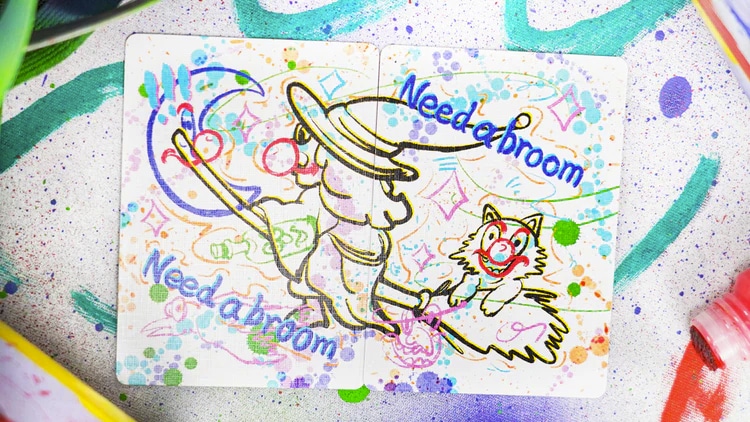 Alternatively, combine the two Jokers, and you’ll see them riding a magical broomstick towards the moon. The “need of broom” on the cards captures the essence of this deck.