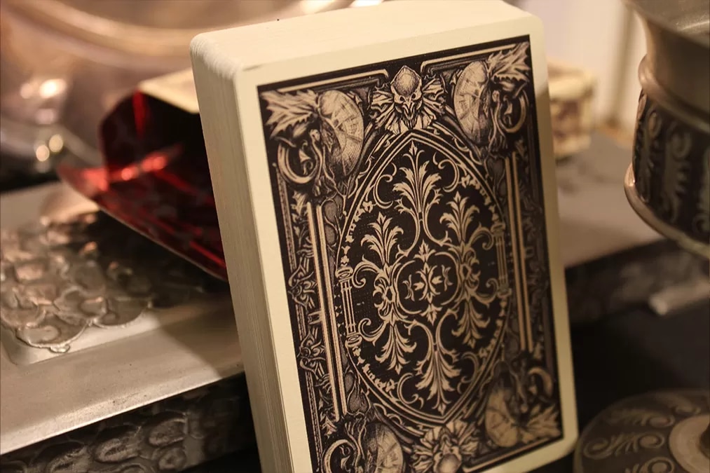 Gothica Playing Cards is a particularly beautiful, twisted and very luxurious take on gothic horror litterature and includes an alchemical puzzle game