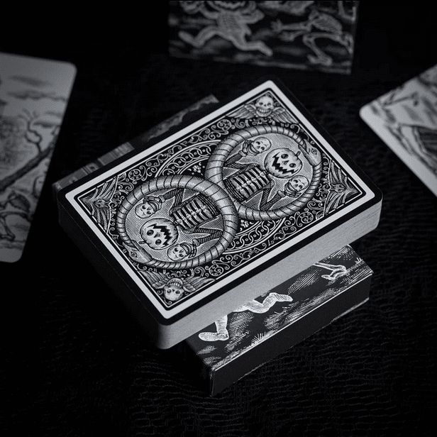 These were illustrated by hand using scratchboards by the master himself–Steven Noble. October is one of the most iconic decks of its generation–known for its fun and frightening take on the afterlife and the Halloween Season.