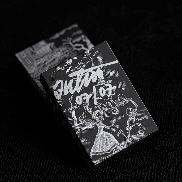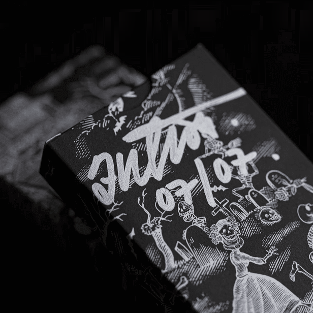 This first edition of October V2 features a striking black-bordered card back featuring our favorite Jack-O-Lantern prominently displayed holding his old friends. Every number and letter on the number cards was hand illustrated by Noble using a bone-like new Fulton Font. This is the best the October Universe has ever looked.