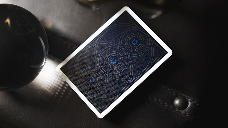 The midnight black backs of Paradox Playing Cards contrast with the mystical, blue-dotted swirling circles, suggesting chaos — yet every line is meticulously placed in defined order.