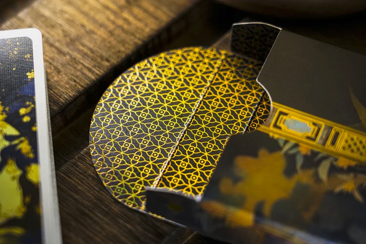 Great care has been taken to blend traditional elements into the card faces, which feature customized designs for both the court cards and the pips. Each court card is displayed against a scroll-like background, with the characters dressed in traditional attire. The intricate ancient patterns on the garments symbolize harmony and beauty.