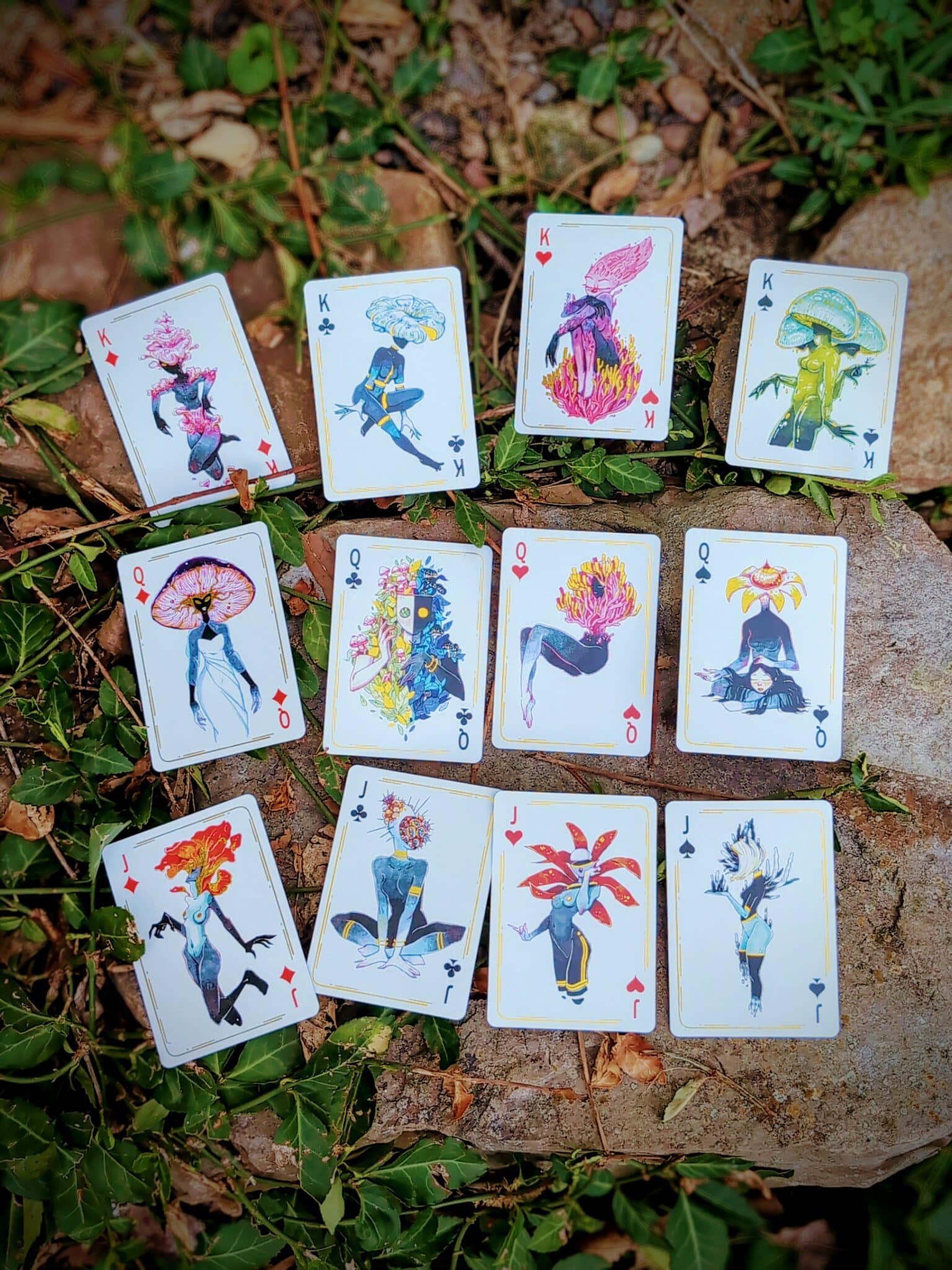 After creating the tarot deck, I’ve decided to make a poker playing cards set. This deck will have 54 unique Mushroom Ladies on it!!! It’s 52 cards and 2 jokers.