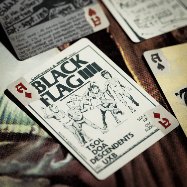 The court cards feature full blown flyers rarely seen and each custom pip was created from actual scans of these archives of punk history.