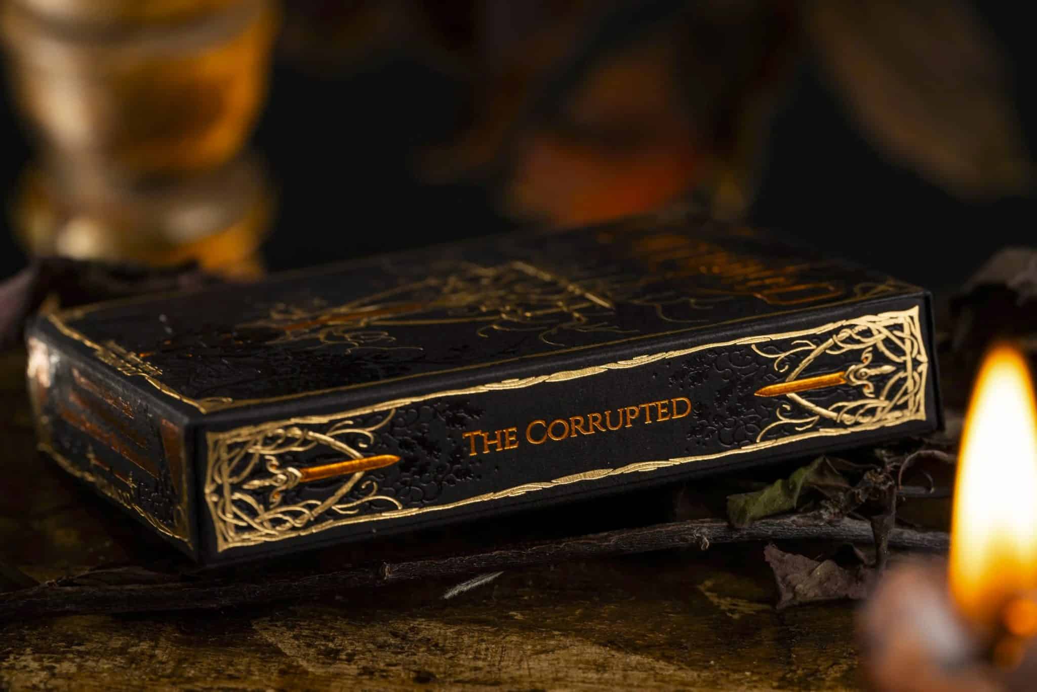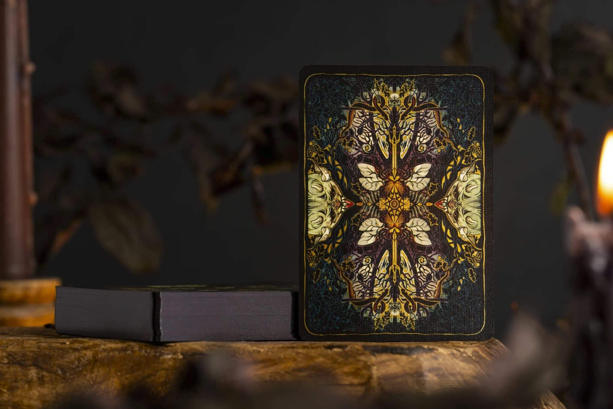 The luxury edition of the deck, Chaotic Night features a unique card back, full of shadows and menace. Here, full dark settles in and chokes out the last gasps of sunlight. The gold-foiled faces of the cards are not unscathed; they’re rendered now against a pitch black background to showcase the dying of the light. With gorgeous black gilded edges. Dark and terrifying, the Chaotic Night truly showcases the Corrupted.