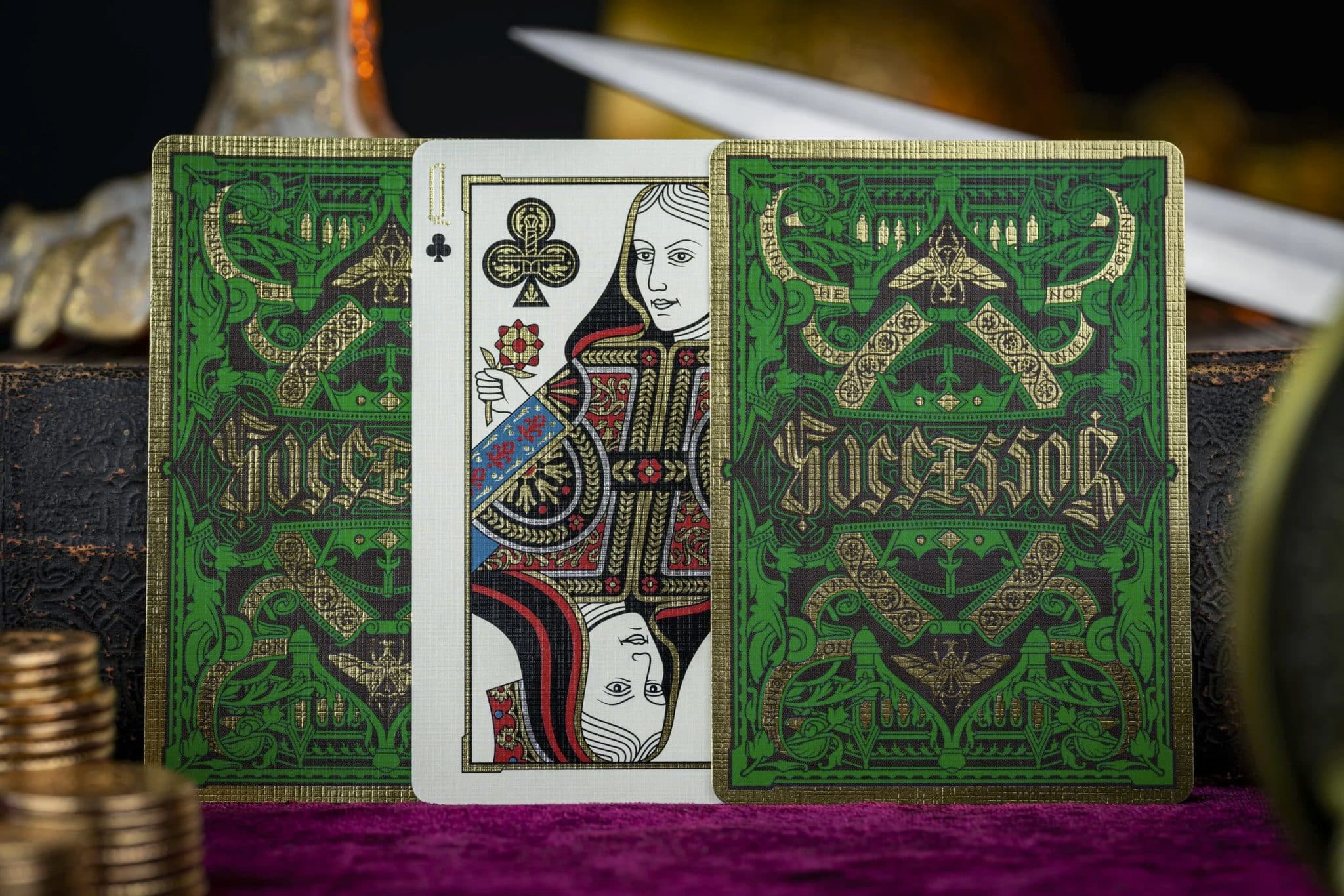 The Successor, presented by The Gentleman Wake and designed by Kevin Cantrell Studio, represents two years of unwavering effort to create the MOST LUXURIOUS playing cards ever made. Evoking art from 15th century cathedrals, canvases and manuscripts, The Successor depicts the trials and triumphs of a line of royal succession.