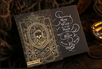 The Trial of Blackbeard is an immersive and interactive deck of playing cards game that is also a fusion of a puzzle game and features of Blackbeard. Each card features elements, forming pieces of an intricate treasure map when arranged correctly.