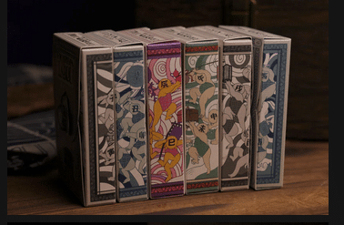 The court cards of the Urashima Tarou Playing Cards beautifully capture the duality of time through the story’s key characters. Each court card features both the youthful and aged versions of Urashima Tarou, Princess Otohime, and other figures from the tale. This contrast between their vibrant beginnings and their transformed selves reflects the core themes of the legend, innocence and wisdom, fleeting moments and eternal consequences, inviting players to explore the delicate interplay between past and present with every glance. Muti-Color Foil Cards (In both Louver Editions)