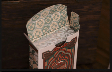 Place the deck in sequence and take in the mesmerizing pattern gilded edge of the deck. As the cards are flipped in sequence, the intricate design comes to life, revealing the opening and closing of the tamatebako, the mysterious box that transforms Urashima Tarou.